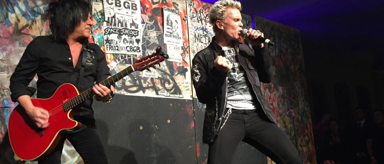 See More›Billy Idol and Steve Stevens performed a searing acoustic set for a sell-out crowd in New York City to kick off the 2014 CBGB Music & Film Fest. The unplugged set featured “White Wedding”, “Kiss Me Deadly”, “Eyes Without A Face” and “Rebel Yell”. Prior to the performance Billy was interviewed on stage by Timothy Sommer about